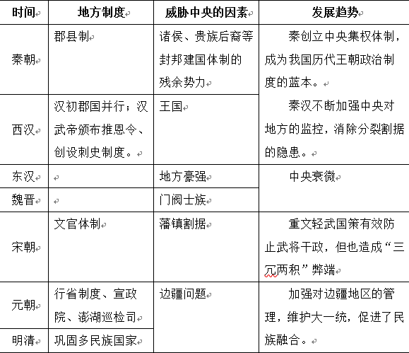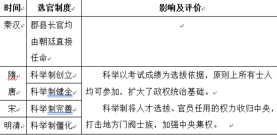 知识梳理(板块二:中国古代文明 -专题三:中央集权体制的变迁)